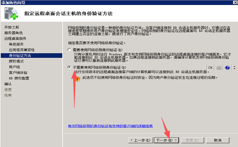 默认就下一步,选择不需要使用网络级别身份验证,继续下一步